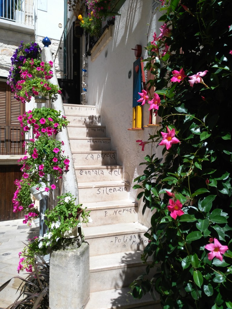 Day one: Polignano al MareWhy should you start your trip from Polignano? This Italian town is a beautiful oasis waiting to be discovered, characterized by its cliffs and caves, but also by its backstreets, terraces and balconies that will offer you wonderful panorama. Furthermore, Polignano has a strategic position: it is just half an hour far from Bari, where many flights arrive. Once arrived, you will discover that in this small town, nature and art have been mixed together in order to create astonishing views. Admire its white cliffs and try to translate some of the most famous poems of the last centuries, painted on doors and stairs of this beautiful historic centre. Despite the tourists, if you walk in Polignano you can still feel the genuine air of one small Italian town, where everybody knows everybody and friendliness is evident everywhere.