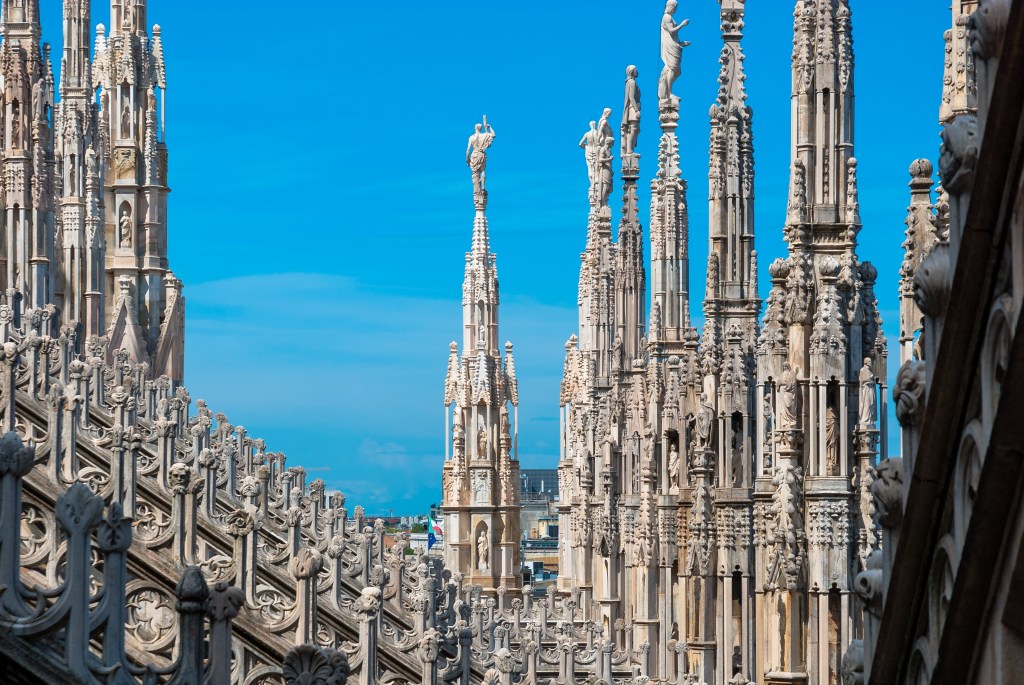 Our tip: to avoid the line, book online and collect the ticket at the info building in front of the Duomo. The majority uses the elevator, so you might find a queue even with the ticket. For this reason, if you want to skip it just book a stairs ticket and use that as an excuse for a further Italian gelato! The best time to visit the roof in the summer is in the morning, when the weather is not very hot, while in the winter if you go before the sunset you will have a romantic view of this dynamic city during the golden hours.